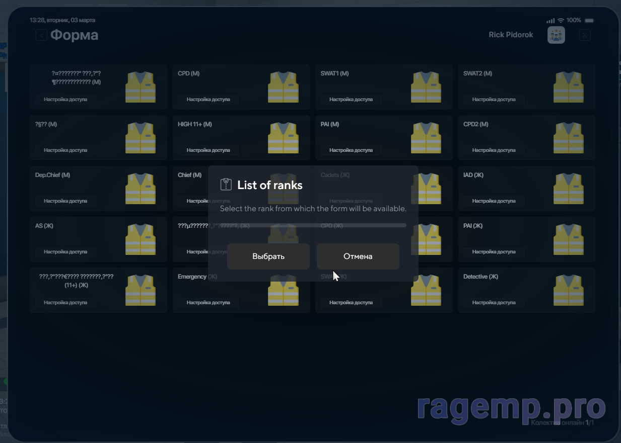 В раздевалке формы вообще нету. А если хочу поменять в планшете - фракция то рангов попросту нету