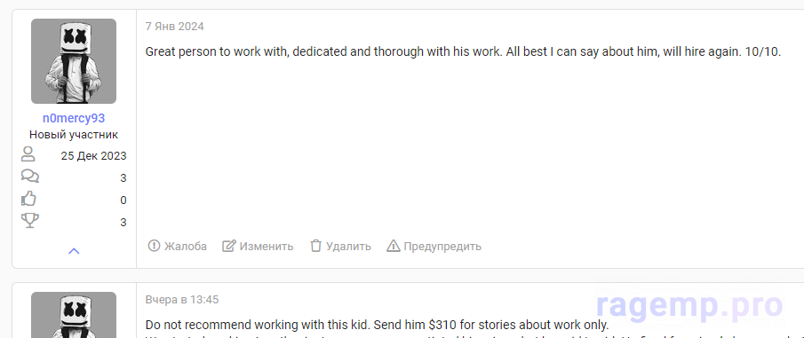 Прошло всего полтора месяца - а восторженный отзыв "great person" сменился на практически заявку в блеклист.
