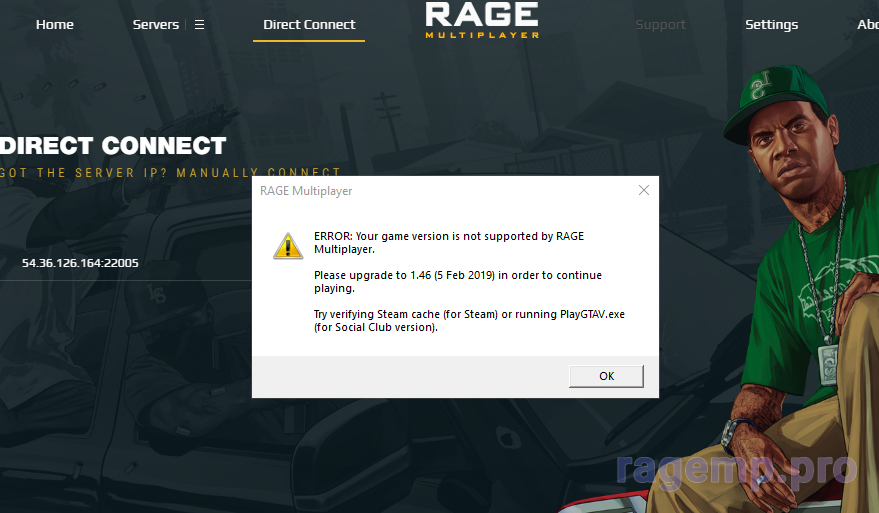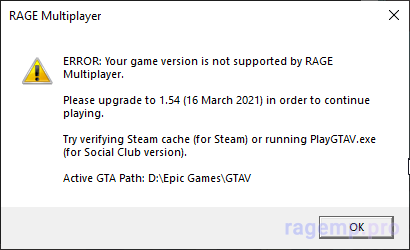 ERROR: Your game version is not supported by RAGE Multiplayer. Посмотреть вложение 2053