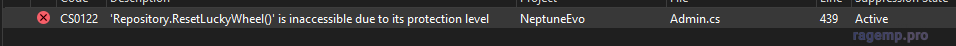 i comment out this line Repository.ResetluckyWheel() The wheel works but give out the female cloth