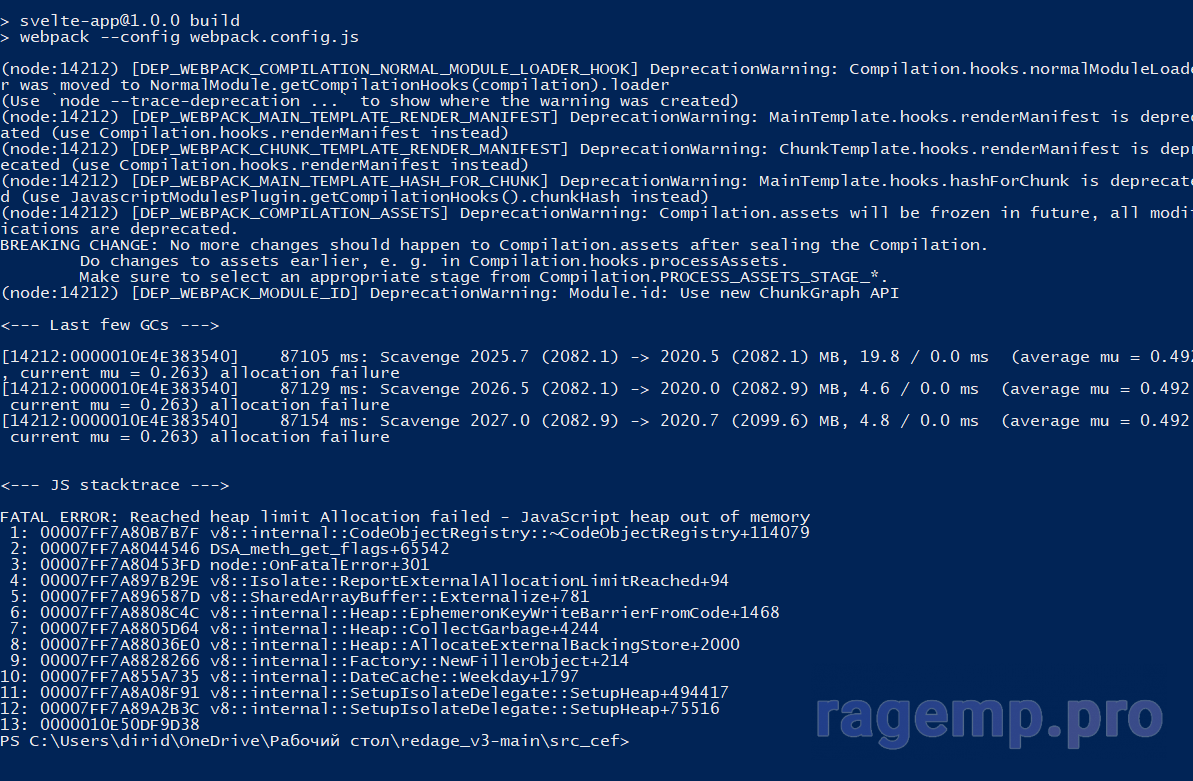 Приветствую! У меня появился вопрос с установкой RedAge 3.0, когда я пытаюсь забилдить через powershell то ничего не получается и вылетает Fatal Error