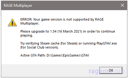 ERROR: Your game version is not supported by RAGE Multiplayer.