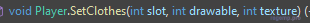 player.SetClothes(id, draw, texture);