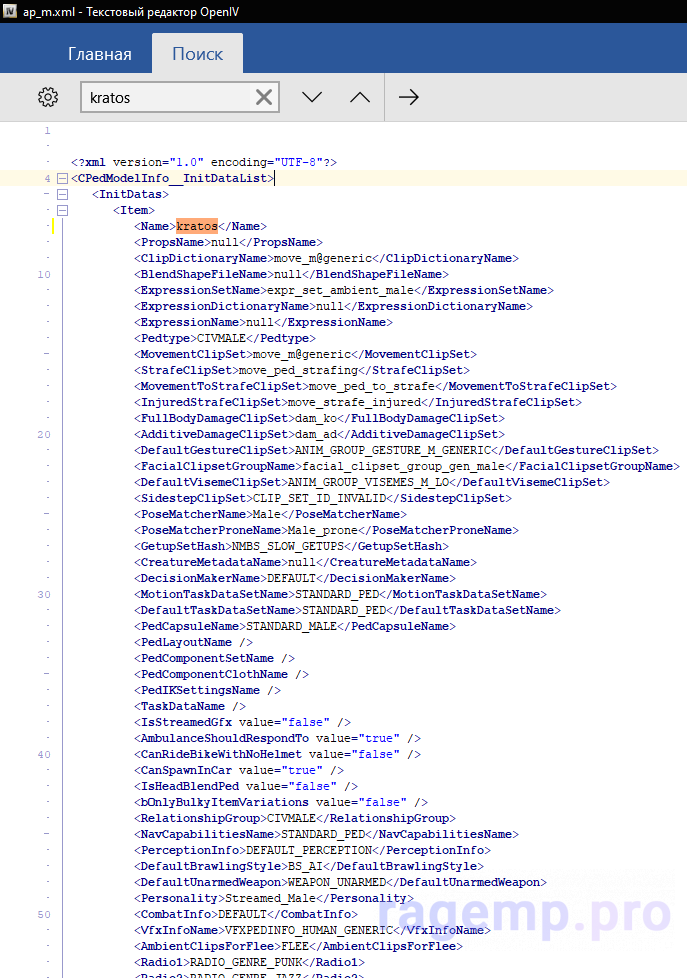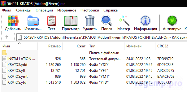 Внутрь архива - kratos_ped.rpf мы перекидываем те самые 4 файла из первого пункта!