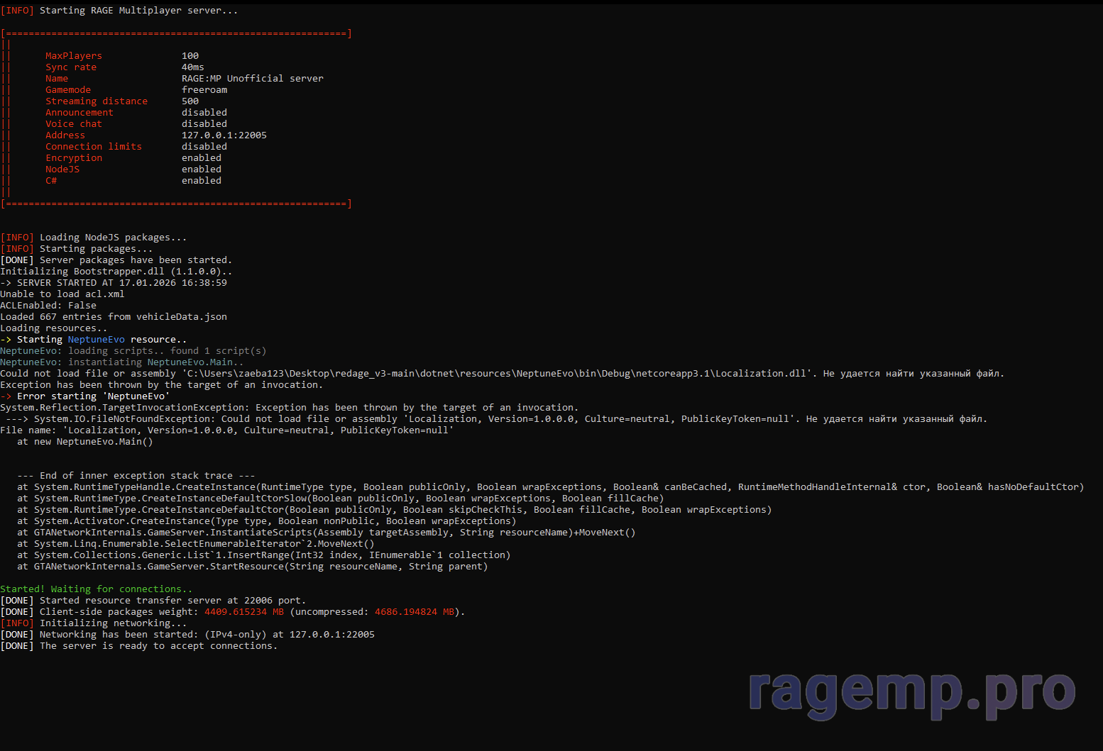 переустанови полностью сервер, и делай все строго по инструкции - https://ragemp.pro/resources/gotovy...pleera-rage-mp-na-baze-redage-neptuneevo.408/
