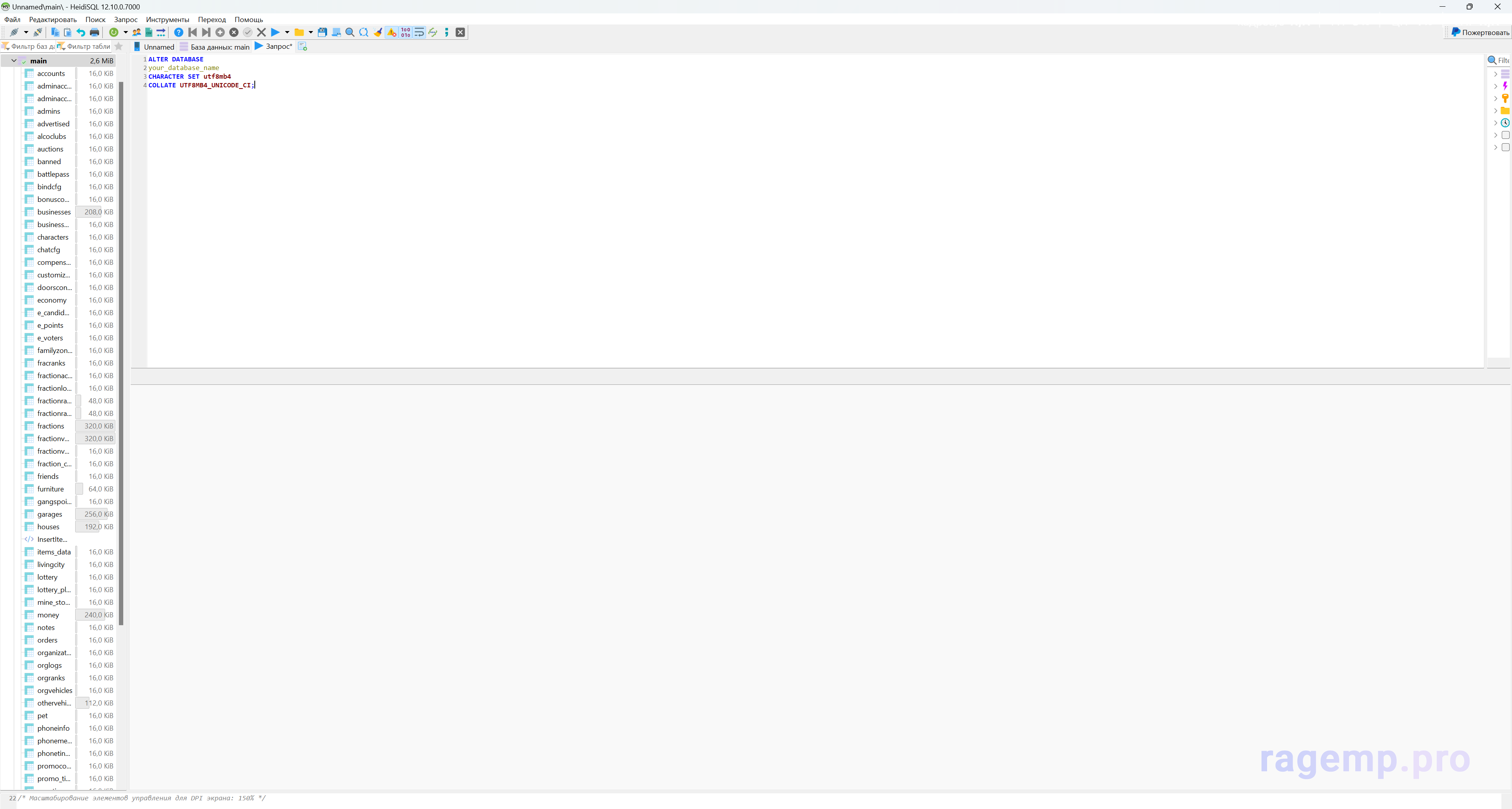Как и где надо поменять кодировку в бд?