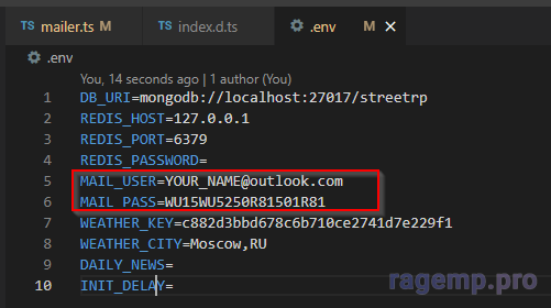 MAIL_USER и MAIL_PASS данными от вашего аккаунта, которые вы вводили при регистрации.