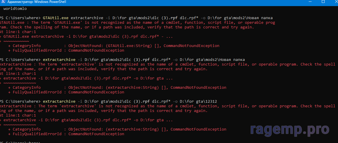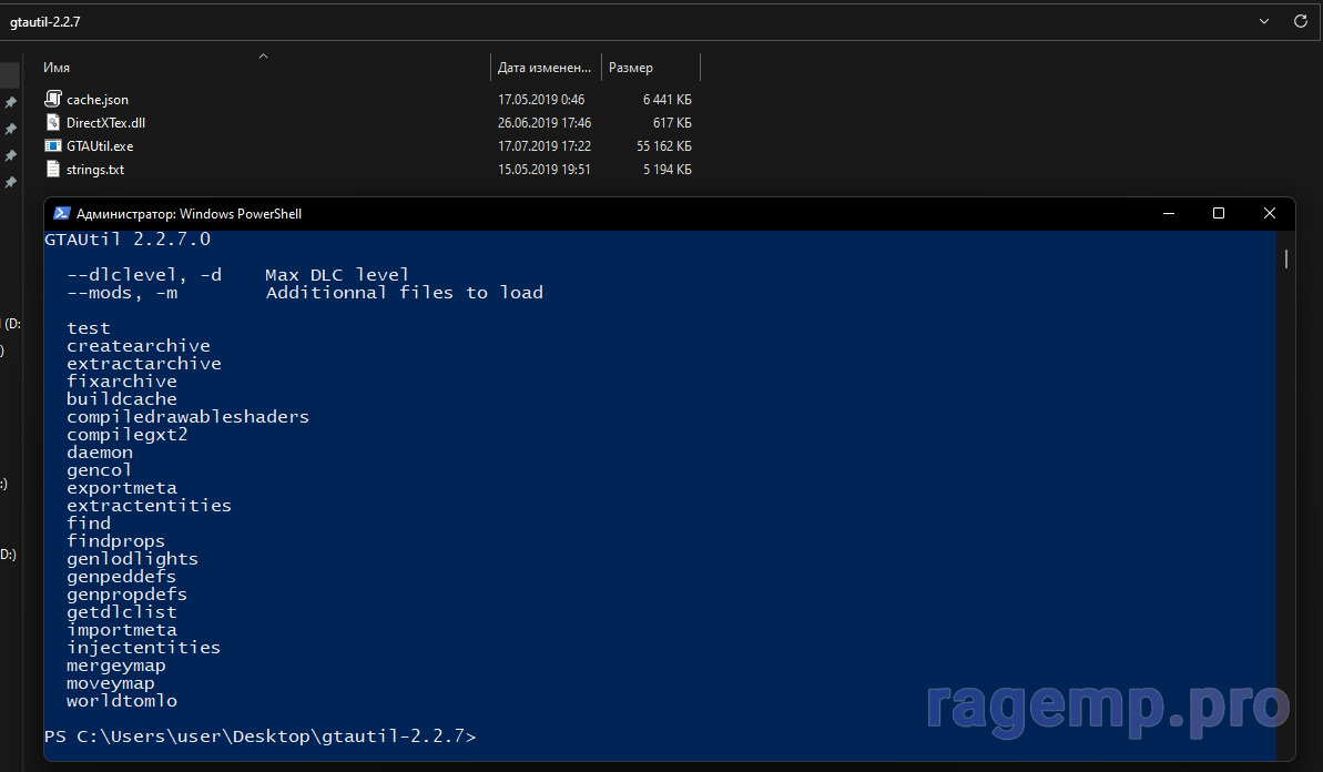 По этому переходим в папку с программой, открываем PowerShell или CMD после чего вызываем GTAUtil.exe.