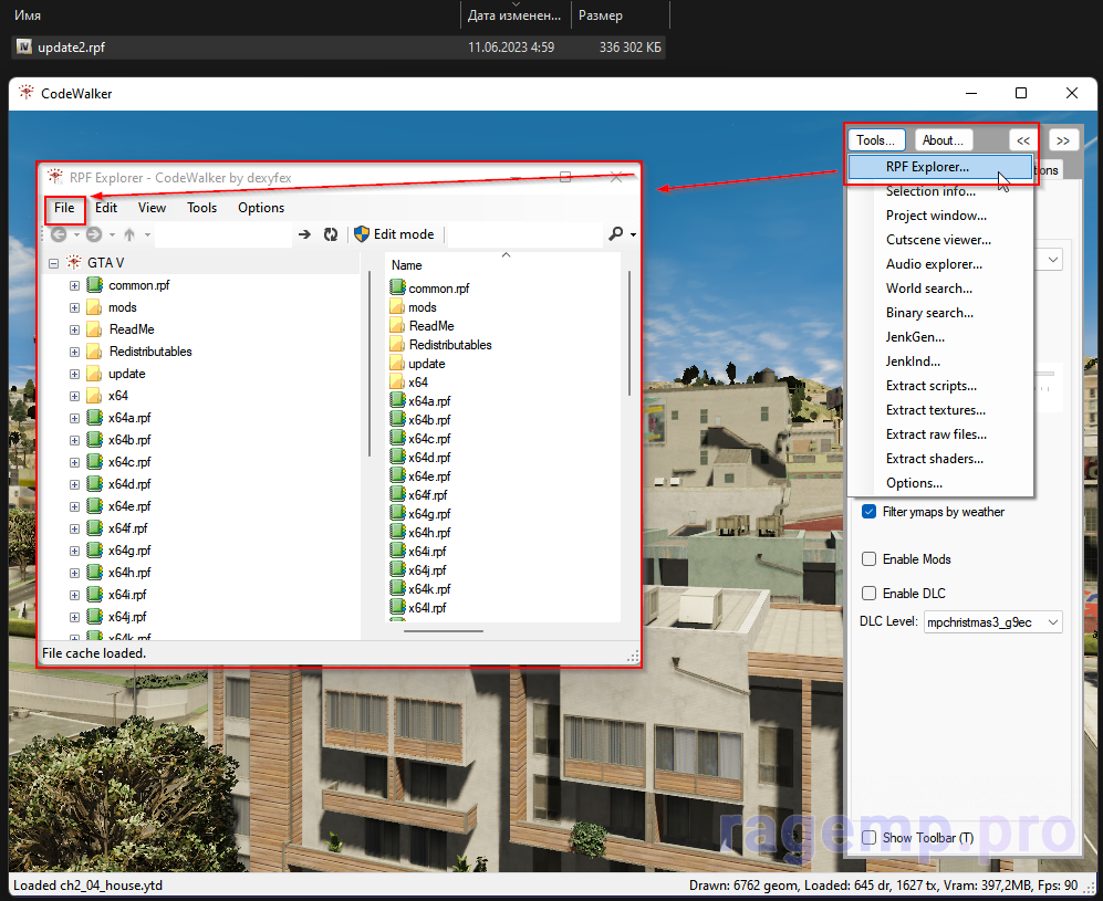 Данный способ позволяет вам полностью просматривать и извлекать все файлы вашего DLC (в отличии от способа CodeWalker RPF Explorer).