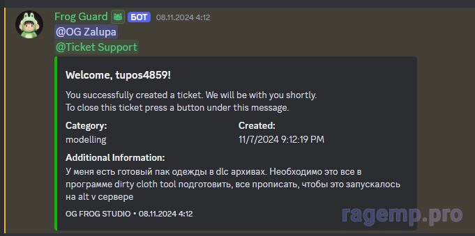 Какое ебало ?) У этой дуры стояла задача закрасить бренды на одежде, точных подробностей что пошло не так и почему у нее не получилось мне не сказали, но с этой задачей у нее возникли проблемы. Потом ей сказали хуй с ним, удали из паков всю одежду, где есть брендирование. Мы тогда не шарили за работу с одеждой, но уже сейчас на опыте, могу уверенно скзаать, что это дело 1 часа, если у тебя есть такая прога как дерти тул. Просто берешь и удаляешь текстуры/модели с брендированием. Но она не то что не справилась, она просто хуй забила и сказала "готово". На звонке включает демку я ей говорю а это что, а это что. Она вообще нихуя не сделала от слова совсем. И начала делать во время звонка на демке то, что типо делала неделю XD Как уже говорил в сообщении выше, я в этот момент ахуел и сказал слать их шайку нахуй. Я это уже и Харданду доказал, да и видимо лягушонок это понял, раз извинился и тему удалили. Конкретно эта дура ничего не сделала, а самый прикол, что за эту очень легкую работу она хотела 5к. Хуй с ним, развести неопытных людей и продать за очень дорого хуйню, ладно, бывает. Это рынок, каждый дрочет, как он хочет. Но эта дура из-за своей лени не сделала ничего XD Т.е. она могла на изи залутать 5к, но из-за своей лени и неадекватности не сделала нихуя, а потом пошла ныть на форум что ее нахуй послали по канонам работы ОГ Фрог студии XD И теперь сама показывает, насколько по уши в дерьме не только она, но и вся их шайка. Смех и грех.@1ghost Максим, ебало к осмотру