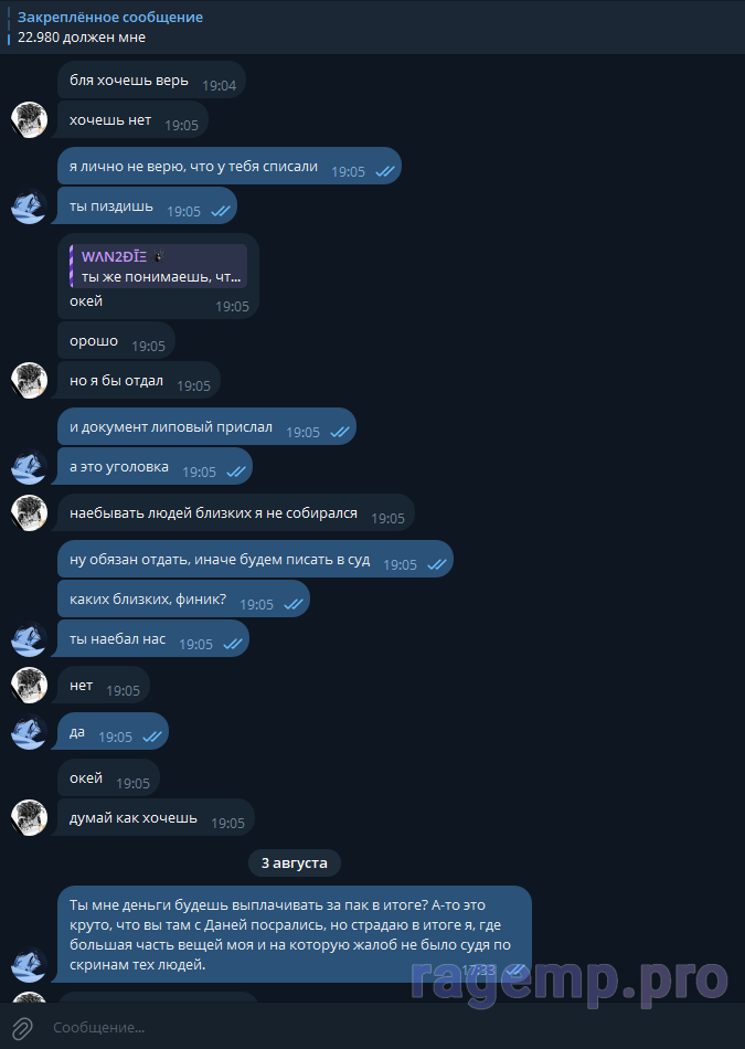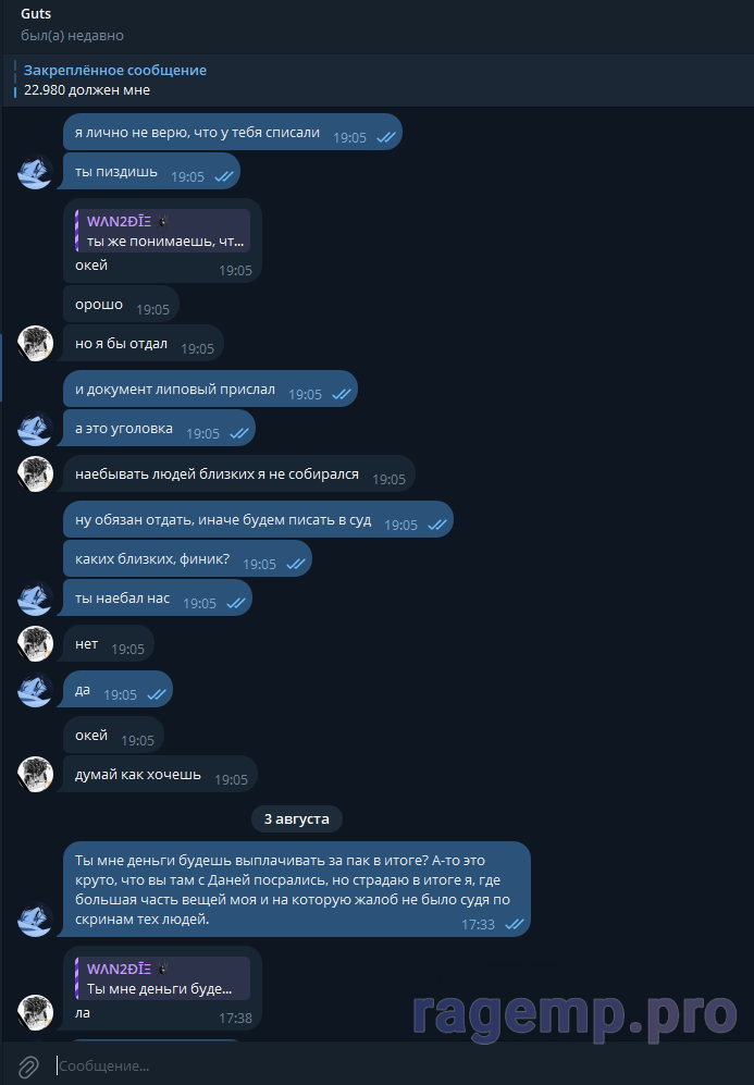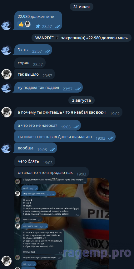 И что по итогу? Меня, Og Frog-a, Ferrum-a наебал и сам же это подтвердил сегодня.я не мог не создавать тему, т.к такое произошло не только со мной как оказалось, ну и команду с которой я вместе рос никто подставлять не собирался, в целом ни разу никого не скамил и не планирую.