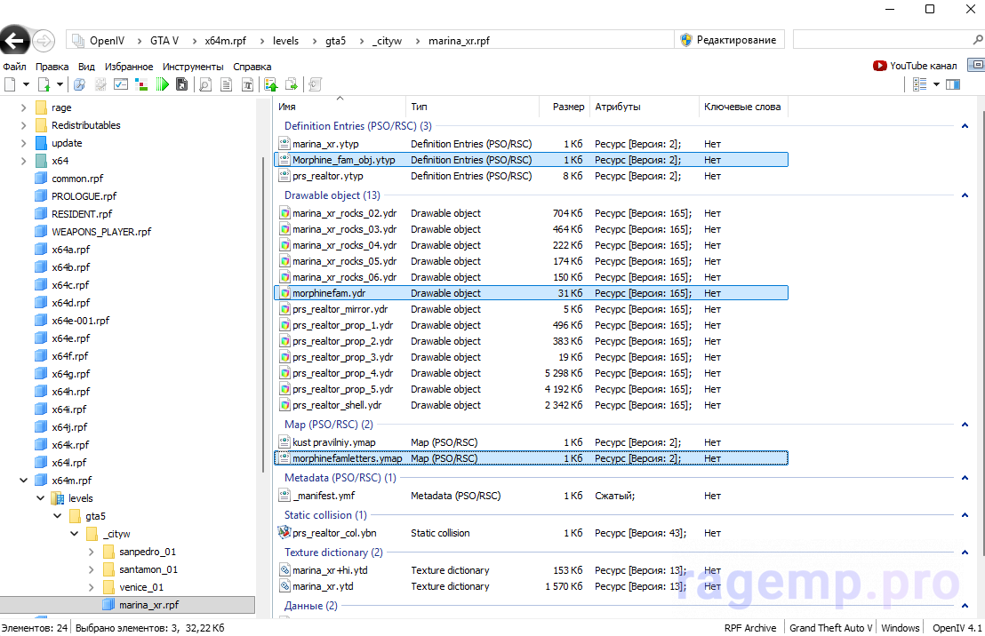 Я через codewalker rpf explorer импортировал и формат xml автоматически убирается. На скрине выше видно что уже в обычных форматах ytyp и ydr