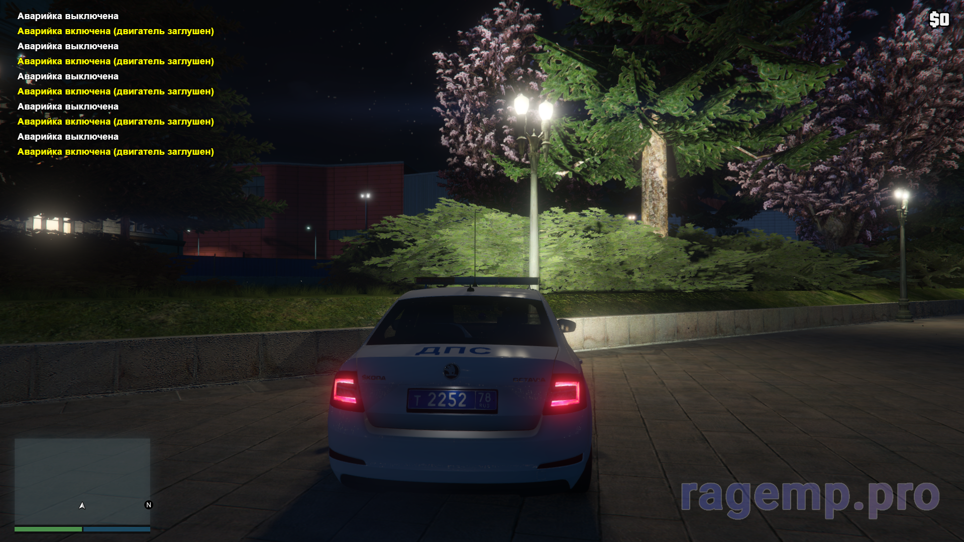 mp.gui.chat.push("!{#FFFF00}Аварийка включена (двигатель заглушен)");