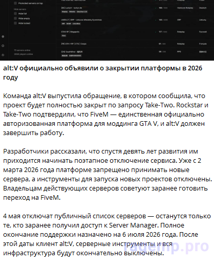 Yamp и Altv прислали заявку, а ragemp до сих пор молчил, хотя является топ 2 платформой по онлайну