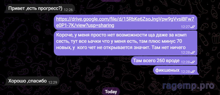 Ответ ты получил до проверки пака (ответ был спасибо ,через минуту) ,очевидно.Ну пошли по списку.