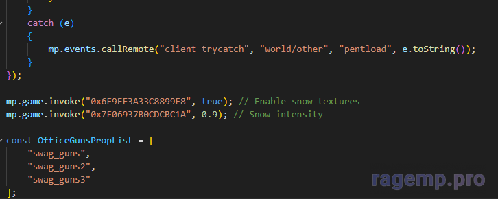 Заходишь по пути (папка с твоим сервером > src_client > файл index.js > в самый низ и прописываешь там эти 2 строкида, разобрался, как сбилдит клиентку, но снега до сих пор нету.