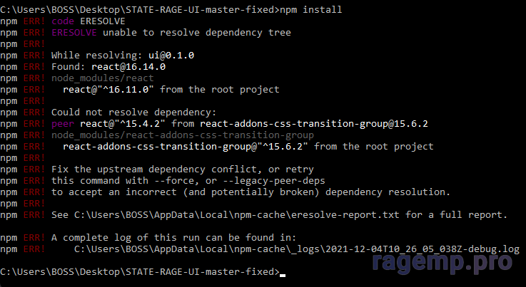 Также выскакивают ошибки при выполнении этих команд в STATE-RAGE-UI-master-fixed