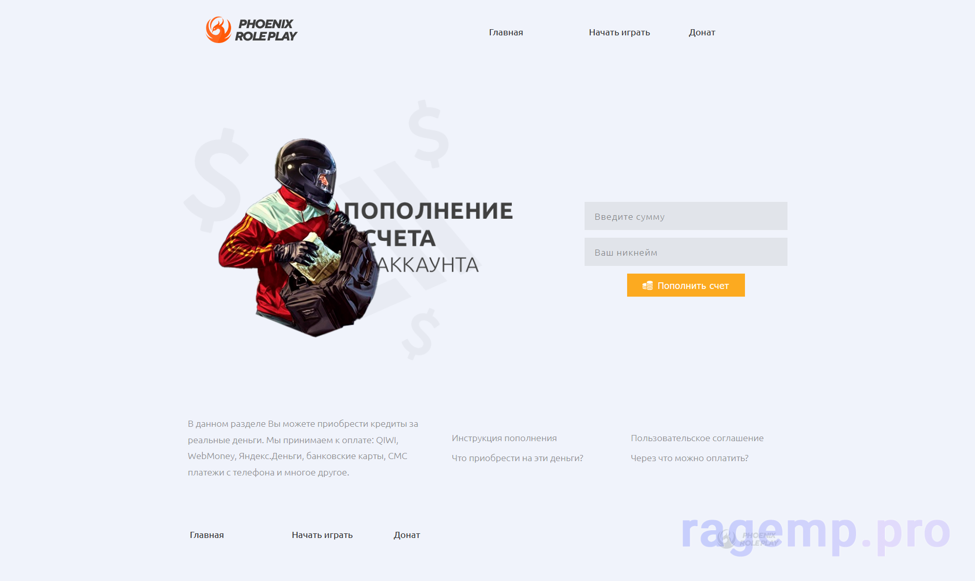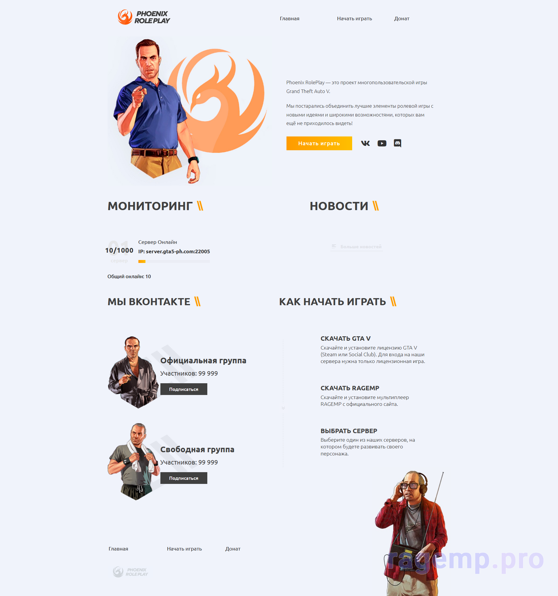 HTML шаблон проекта Phoenix RolePlay, без личного кабинете и форума.