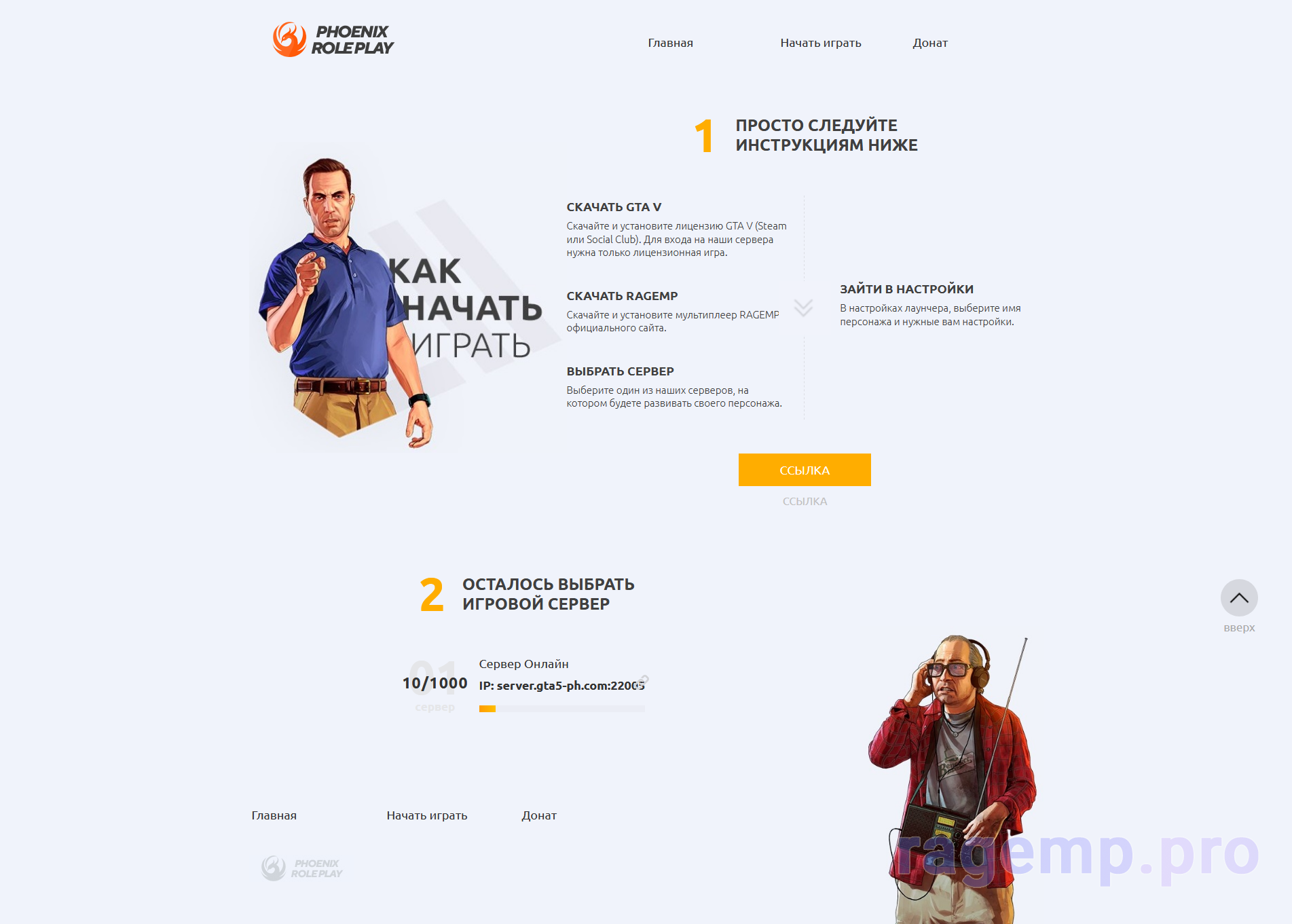 Шаблон проекта Phoenix RolePlay | GTA 5 RP - HTML шаблон проекта Phoenix RolePlay, без личного кабинете и форума.