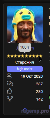 Что могу сказать о данном человеке знаю его как кодера давно ещё даже этого форума не было в помине как и других форумов как он уже воротил хорошие дела на RageMP. Харт не в обиду по поводу форума. Так что данный человек соответствует своему рейтингу 👍