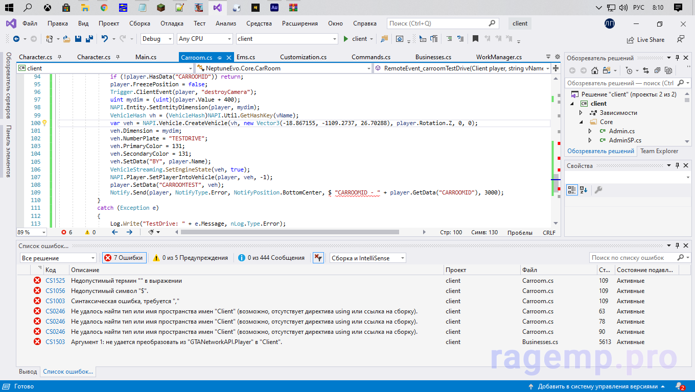 Чтобы изменить место спавна автомобиля заходим в Carroom.cs
