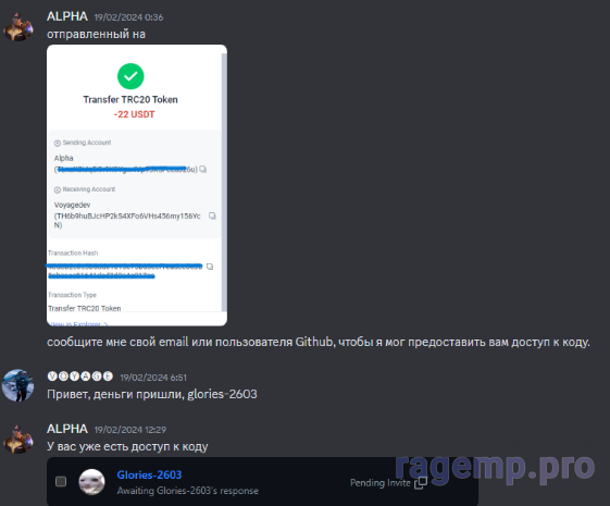 Я связываюсь с этим пользователем, и мы договариваемся о цене за работу.