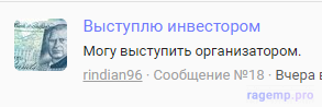 если б " все " не пытались в лезть в дискуссию а автор темы изначально ответил бы на все вопросы которые интересовали людей которые их задали увидев голое сообщение просто о деньгах и готовности их вложить но при этом затребовав 5 пунктов о себе складывается впечатление что пункты составлены для того что бы всю массу народа которая должна будет кинутся в эту информ помойку от автора этой темы для того и составлены что бы только удобно было читать, а содержание не важно. ( опять же это автор темы так думал, ажиотаж вызвал все с языками набросились как собаки услышав 3 млн и слили все свои планы) опытным программистам. Где ты видел таких бизнесменов которые тебе все карты на стол выложат тебе профилю с именем USER USER 2 месяца назад зарегистрированным и ни слова больше.
